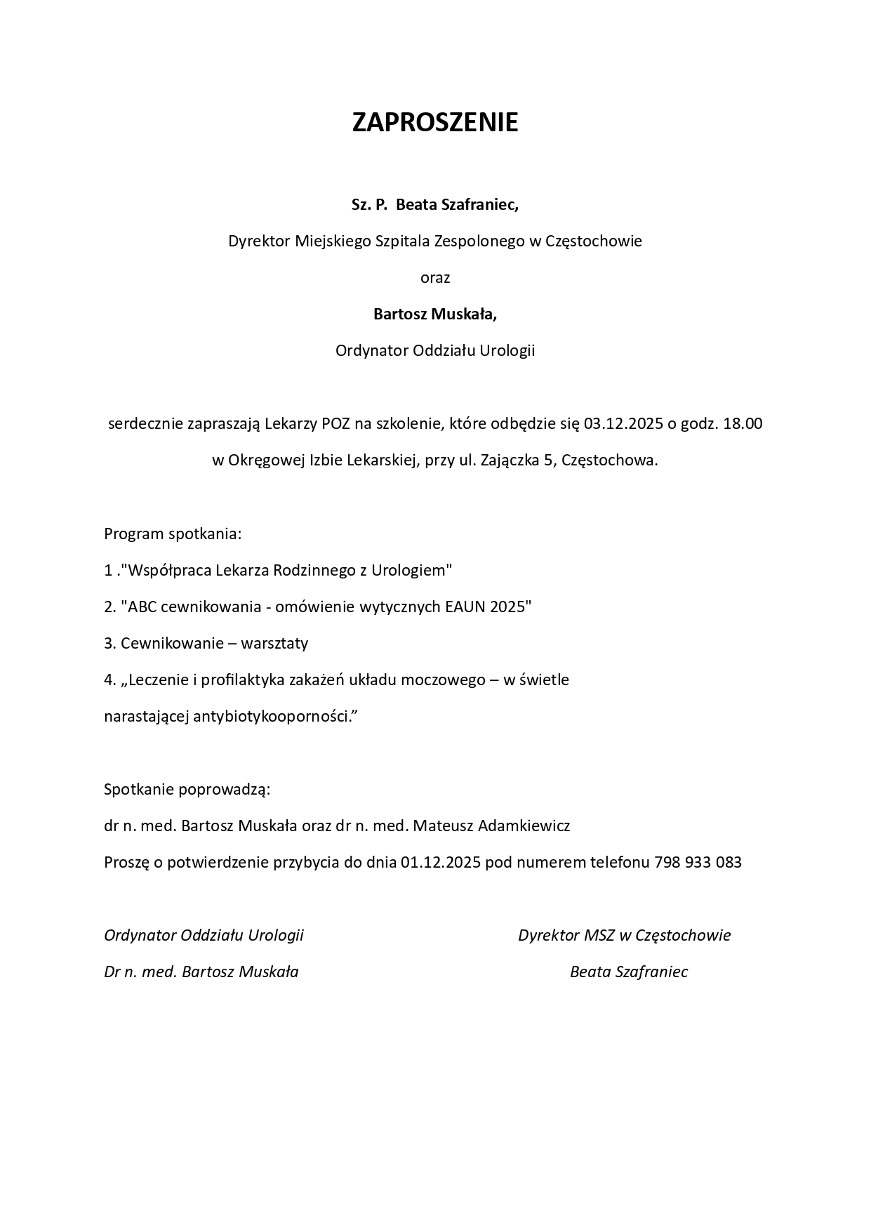 Zaproszenie na szkolenie dla Lekarzy POZ